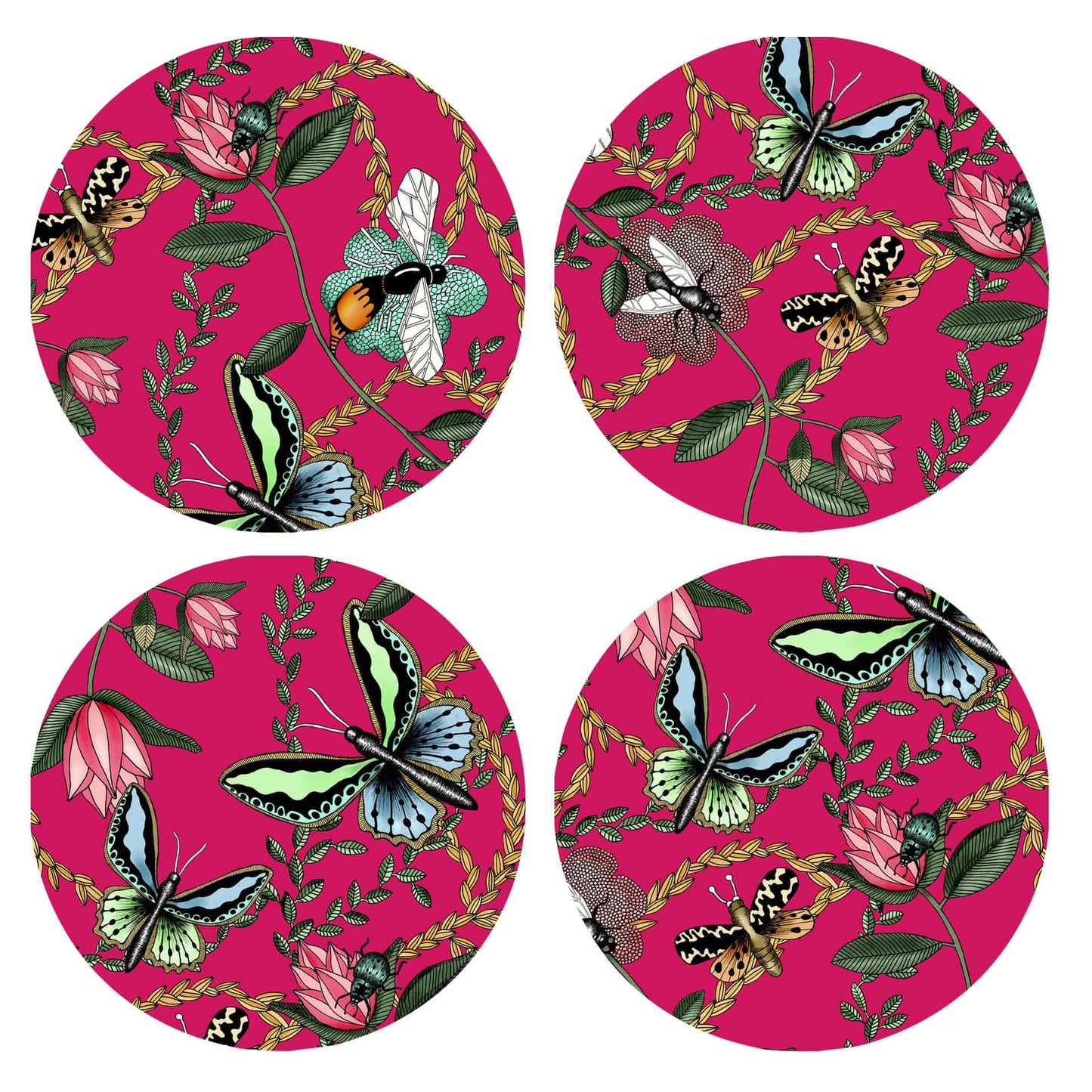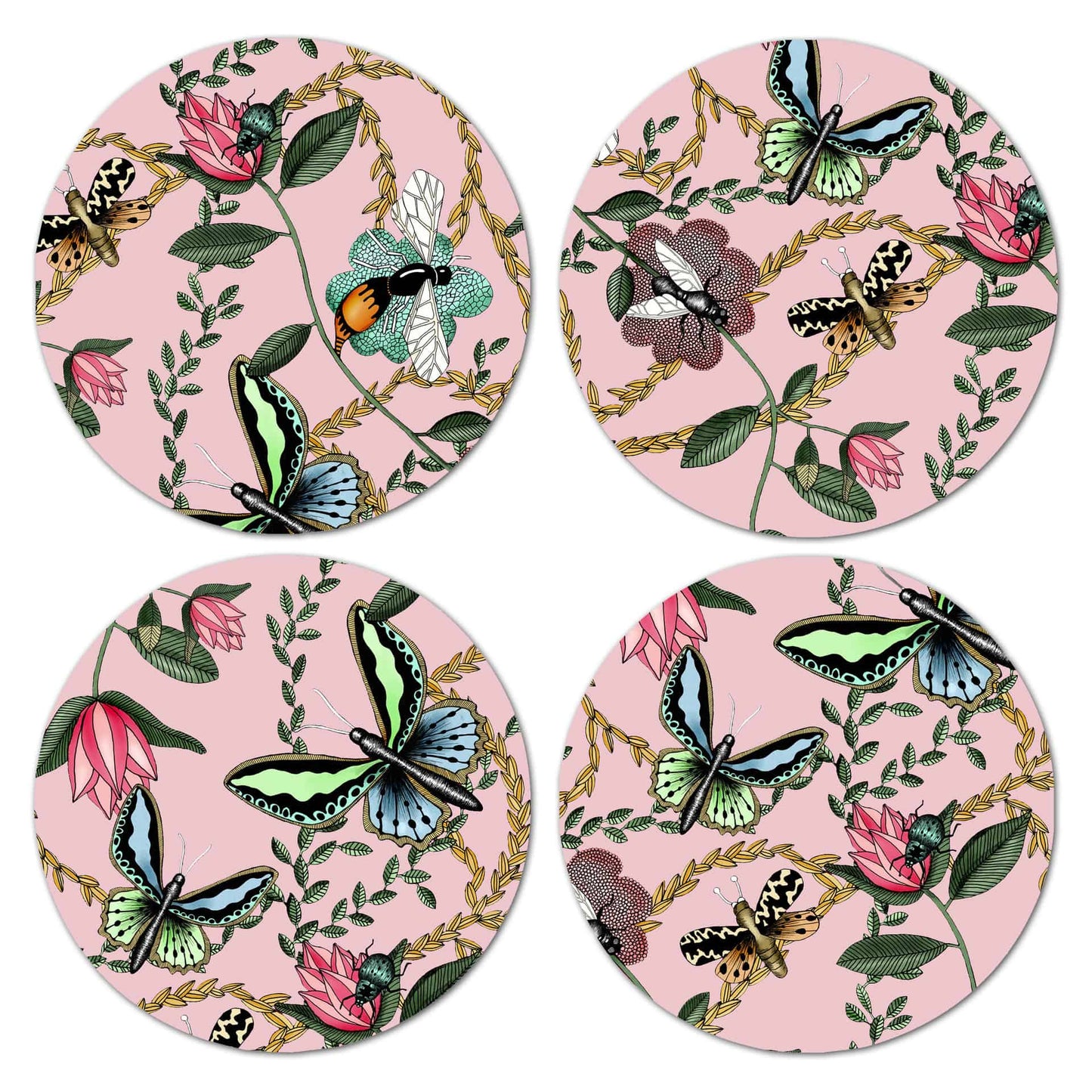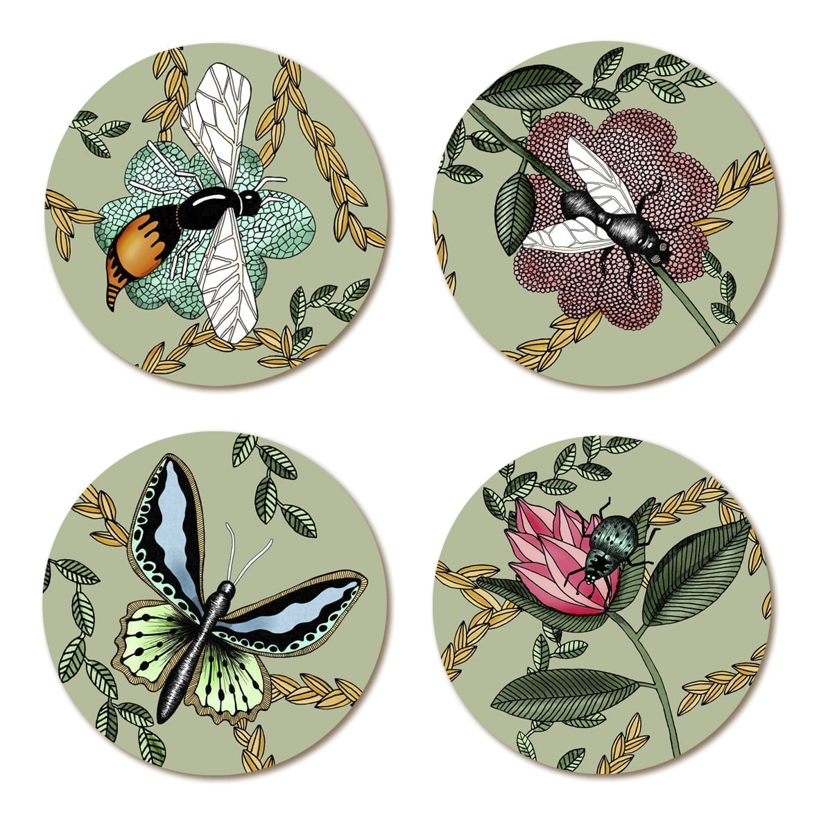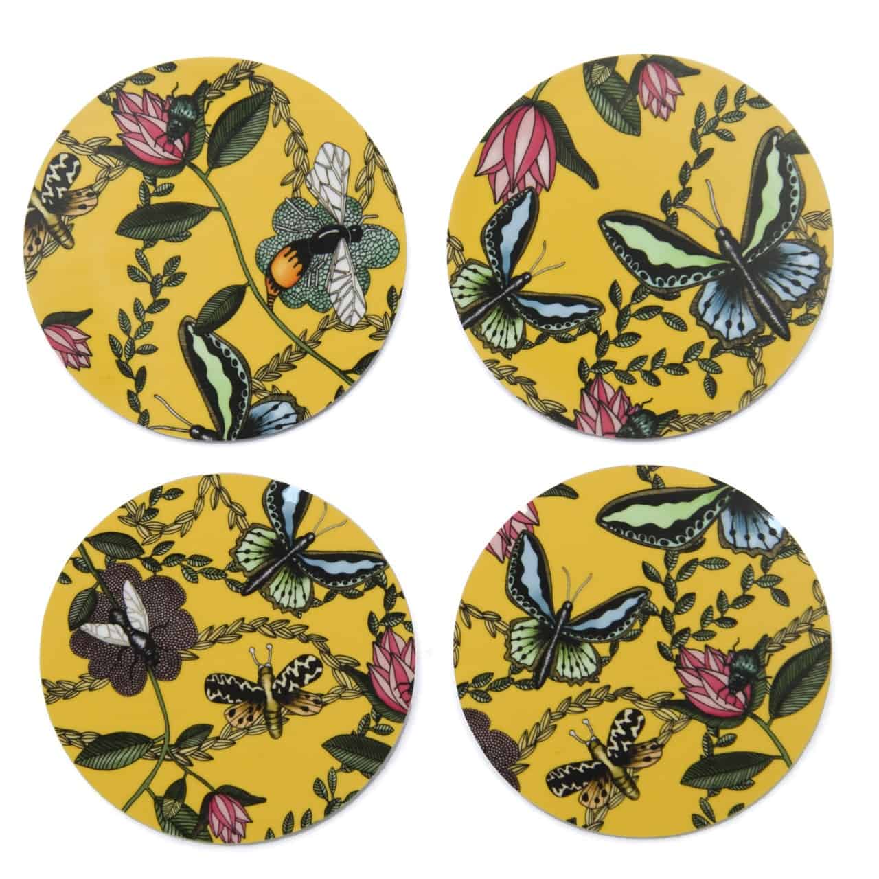 Glasunderlägg Bugs And Butterflies – 4-pack i laminerad björk