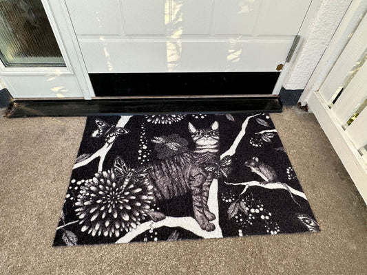 Den andra mattan föreställer Tiger som var min systerdotter Isabels älskade katt, som gick ur tiden för länge sedan. Men nu finns han ändå här i form av mattan Catzy, och hälsar oss välkommen hem, varje dag.